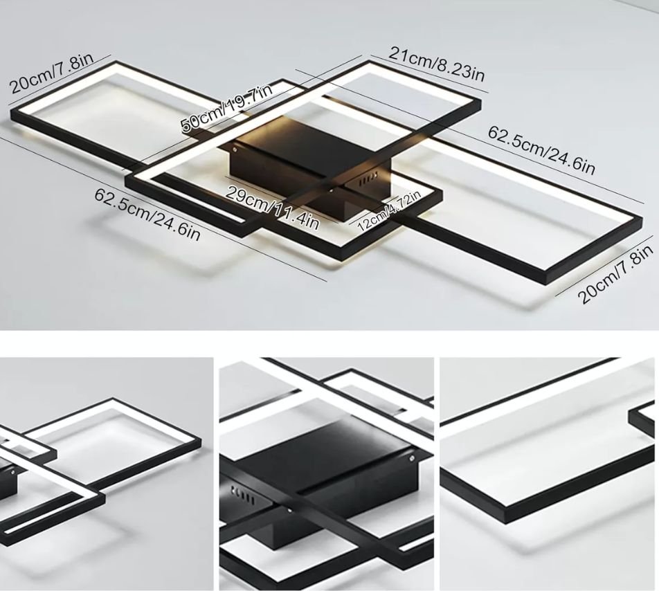 La Lámpara LED Minimalista de Techo Cuadros es mucho más que una fuente de luz; es una obra de arte que complementa tu decoración y refleja tu estilo personal. Su diseño innovador y funcional la convierte en el centro de atención de cualquier habitación.